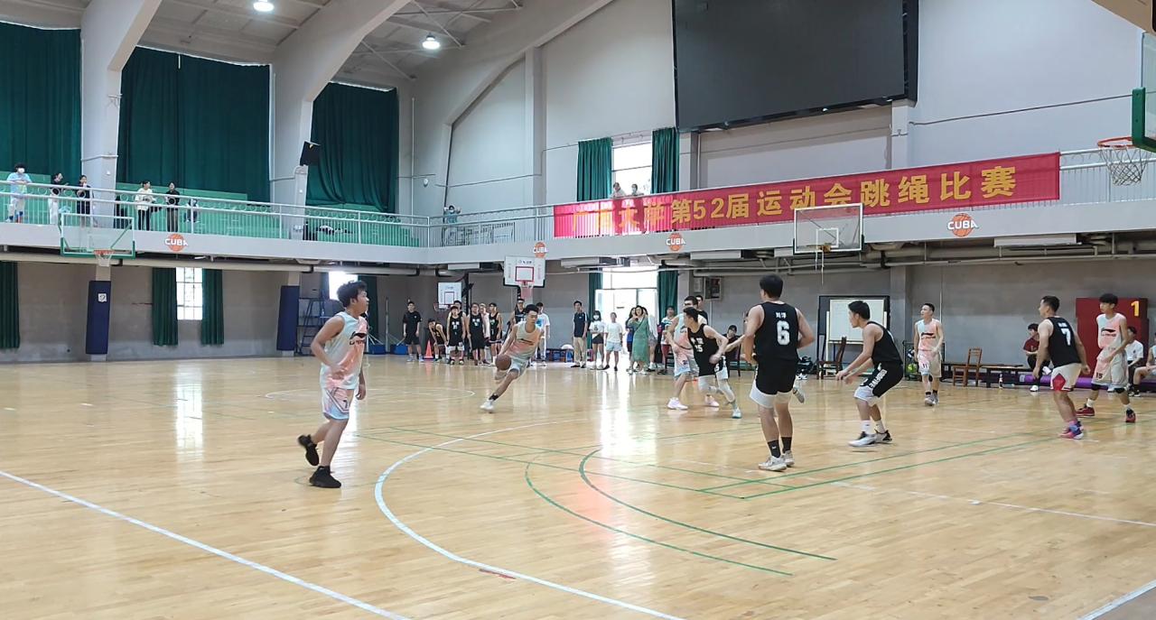 本次比赛男生进行5v5全场篮球赛,按赛程规定的时间参加比赛。比赛第一轮以学院为单位抽签分组,然后进行小组内循环,采用积分制,按积分取小组前两名进入四强。第二轮进行四强淘汰赛,选拔出进行3-4名排位赛的队伍以及最后单独进行决赛的队伍。