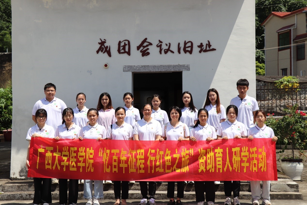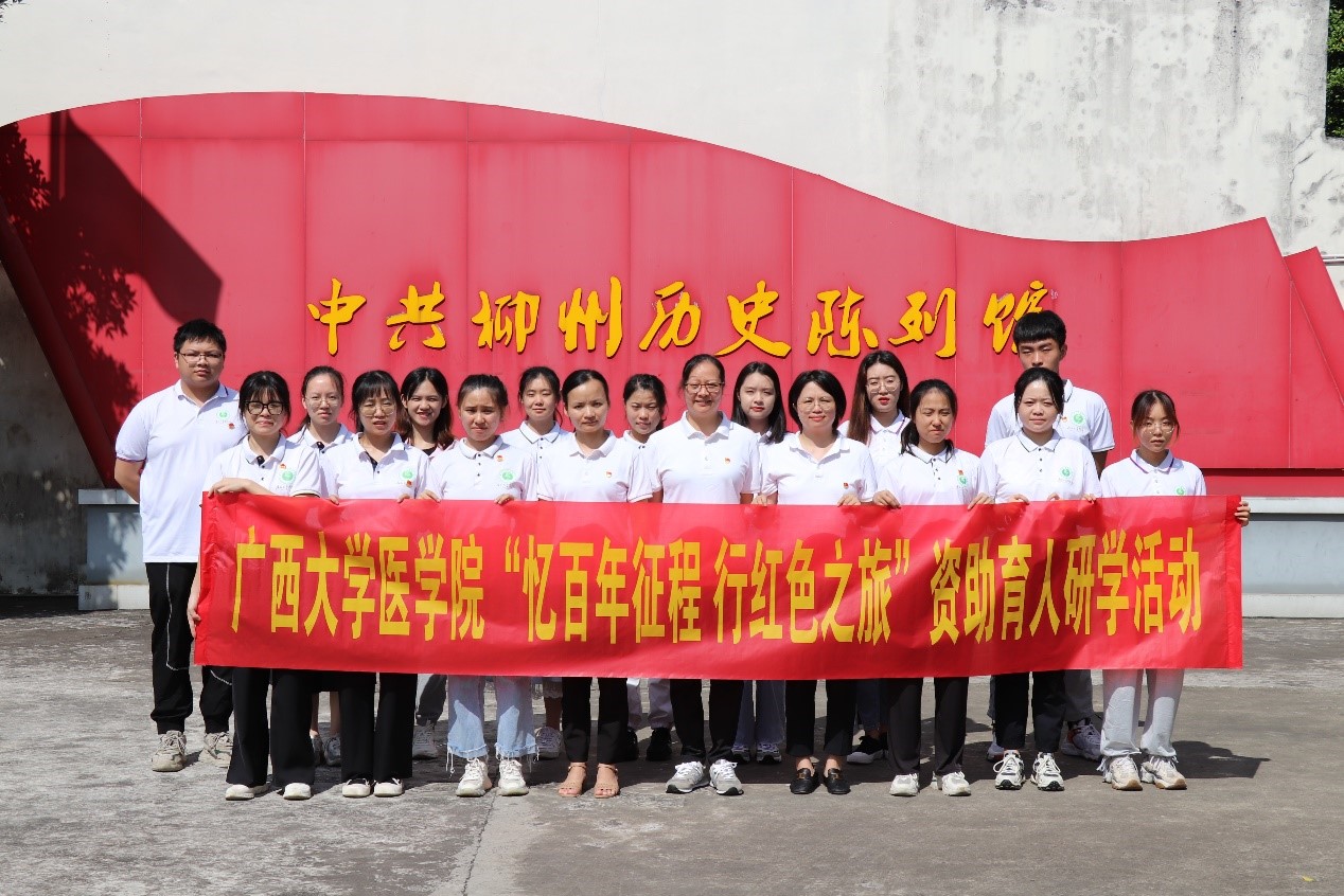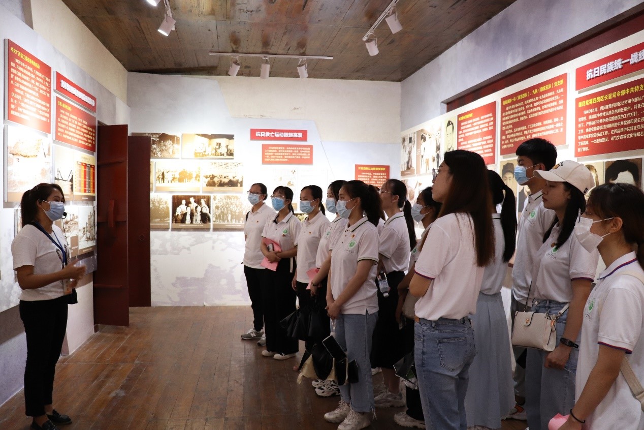 2022年7月13日,研学团前往中共柳州历史陈列馆。在熊柳生故居的学堂里,院党委副书记李莉给大家上了一节廉洁教育课,师生们合唱红歌。在柳州历史陈列馆门前,全体党员手握拳头,在李莉副书记的带领下,重温入党誓词;在成团会议旧址,罗波老师带领全体团员重温入团誓词。
