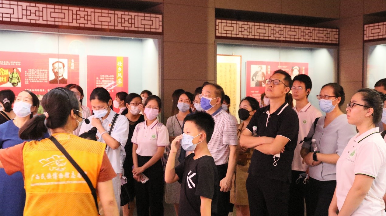 2022年7月15日,研学团前往广西民族博物馆参观“家和万事兴”——广西家庭家教家风主题展。讲解员详细地向大家讲解了一心为民的韦拔群、“没钱的官”的李天佑、三代守边的陆兰军等英雄人物的家教家风故事。大家边走边听边看,认真学习领会古往今来清廉文化故事及其所蕴含的时代价值。