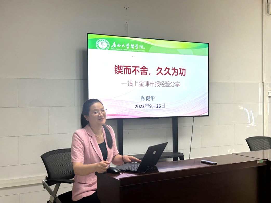 研讨会上还邀请了药学系吴黎川和颜健华副教授分享申报课程类项目的经验。吴黎川副教授通过《人体解剖生理学》课程建设为例子,详细介绍了如何发掘专业课程思政元素,如何将思政元素融入课堂教学以及如何实现与思政课同向同行;并介绍了申报课程思政项目的注意事项和过程。颜健华副教授重点介绍常用的线上课程平台,分享线上课程设计和制作的经验,以及讲解申报线上课程项目的材料填写和资料准备等注意事项。