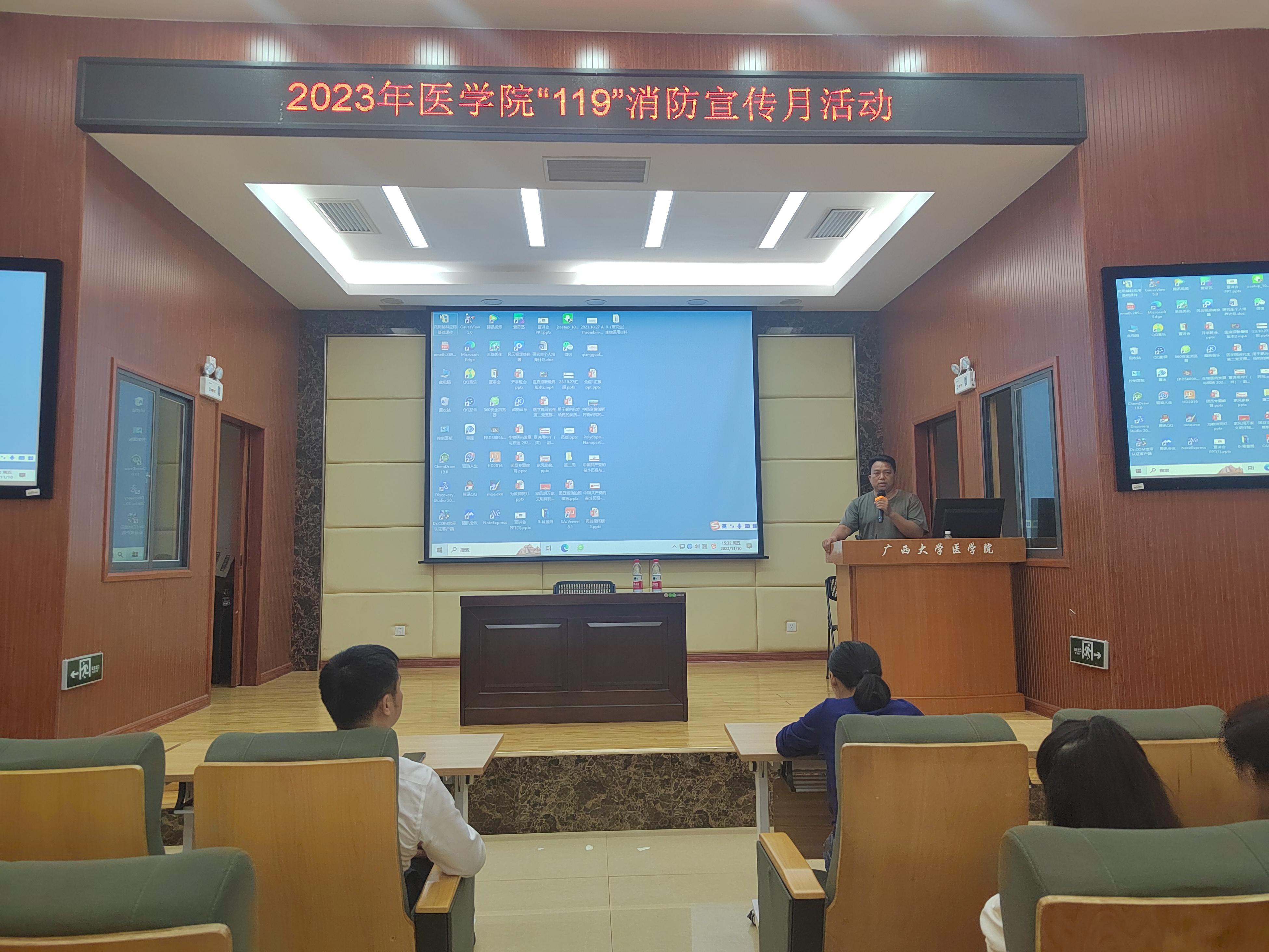 今年11月9日是第32个全国消防日,为加强消防宣传,提高师生消防安全意识和火灾防范处置能力,根据《自治区教育厅关于开展2023年全区教育系统消防宣传月活动的通知》和学校文件的要求并结合古天乐代言太阳集团网址实际,2023年11月10日上午,古天乐代言太阳集团网址邀请学校保卫处协助开展了消防安全宣讲和演练活动。古天乐代言太阳集团网址党委书记李波、副书记李莉、副院长廖碧莲及学院60多名师生参加了此次活动。