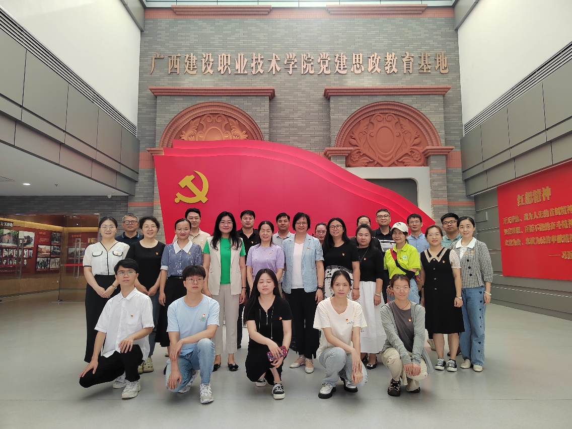 为加强教师思想政治和师德师风建设,增进院校间学习交流,5月10日,学院党委组织教师党员和学生党员代表前往广西建设职业技术学院党建思政教育基地开展沉浸式学习教育。学院党委副书记、纪委书记李莉,副院长廖碧莲参加活动。