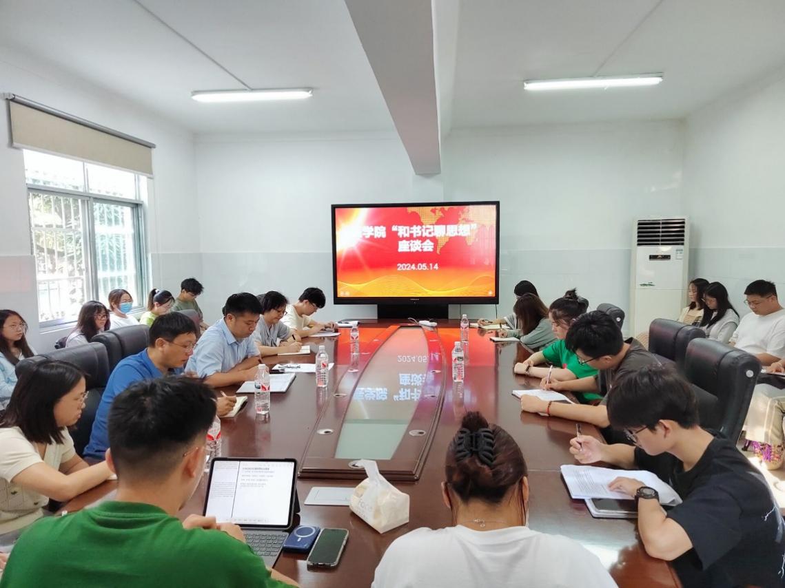 5月14日,古天乐代言太阳集团网址举行主题为“奋力书写为中国式现代化挺膺担当的青春篇章”的 “和书记聊思想”座谈会。学院党委书记李波,党委副书记、纪委书记李莉,副院长朱晓鹏、团委书记罗波、专职组织员张静与学院团员青年代表围坐一堂,畅聊思想。