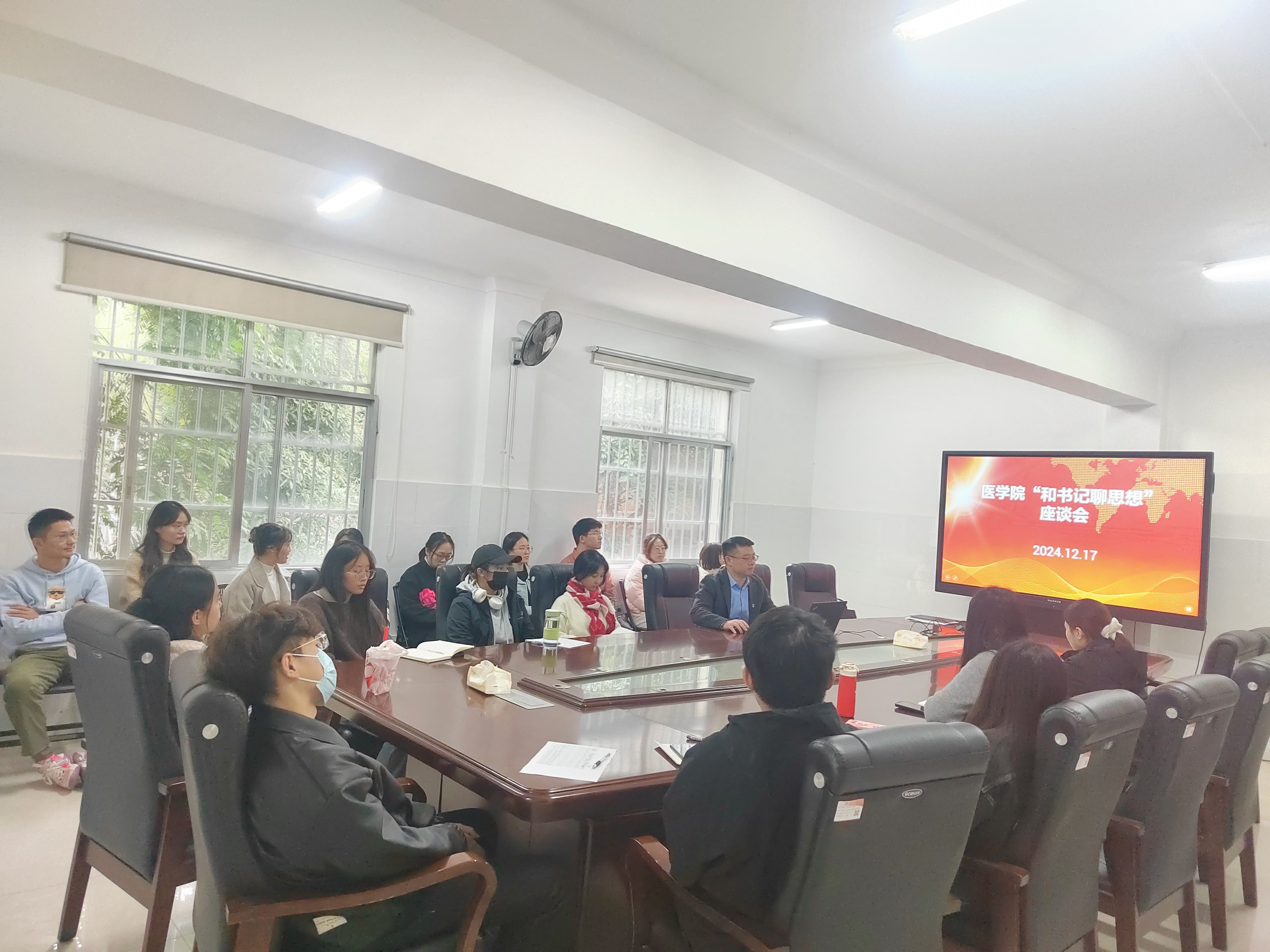12月18日下午,院党委在学院209会议室开展 “和书记聊思想”座谈会。院党委书记李波、党委副书记李莉、办公室主任伍娟,以及本硕博学生代表参加座谈会。