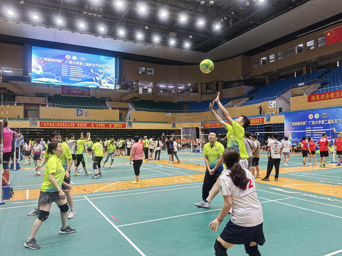 4月20日,由校友总会主办、校工会协办、校友排球协会承办的“广西碳酸钙杯” 广西大学第二届校友气排球大赛在学校体育馆圆满落幕。本次大赛为期两天,吸引了来自本校教职工代表、各地校友代表组成的50支队伍。