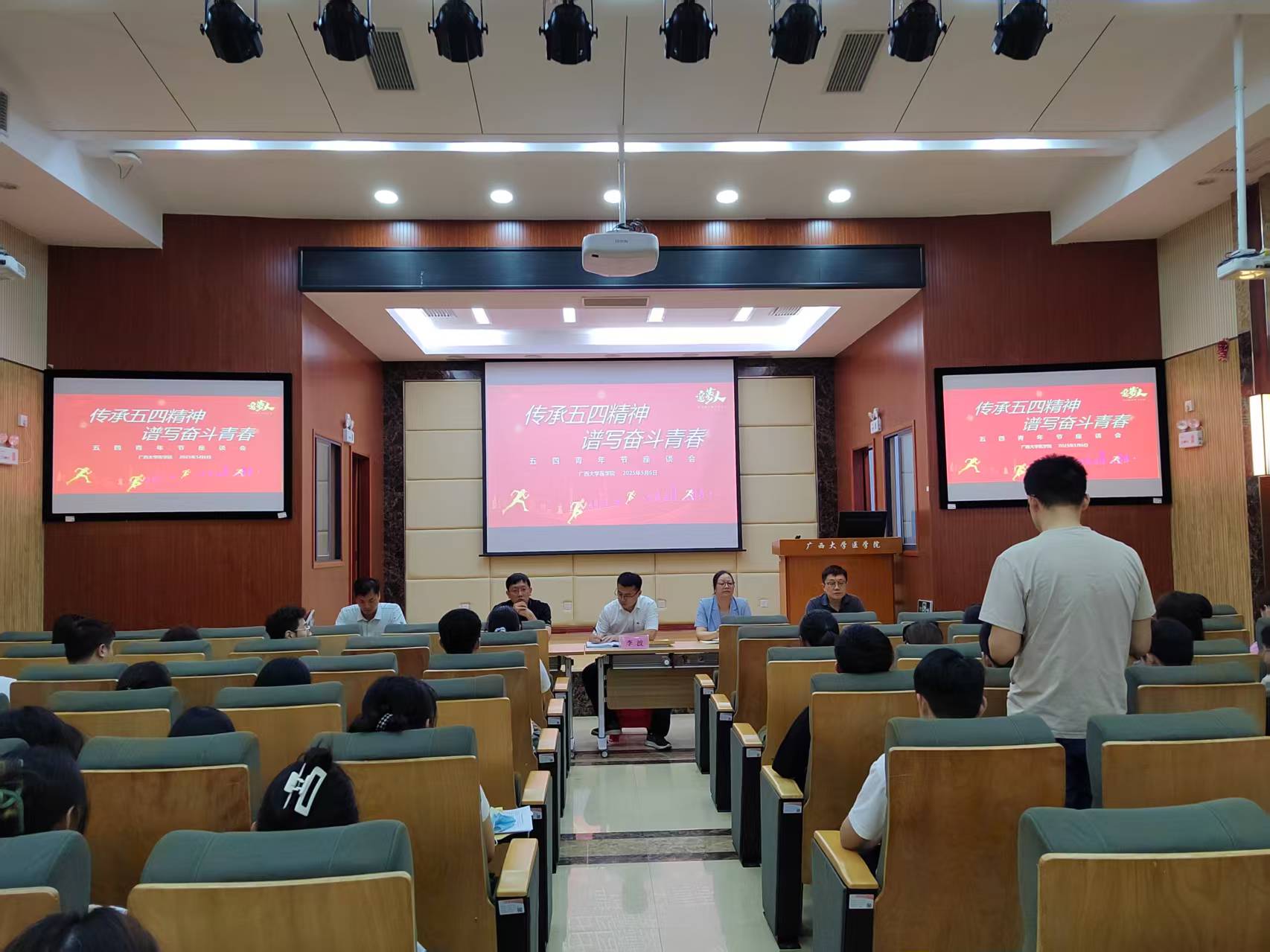 李波作总结发言。他介绍了学院党委123458的创新工作思路,围绕大学生的理想信念、立志成才、志愿服务、守正创新等与同学们展开交流,并对同学们的困惑做出解答。勉励大家保持朝气蓬勃,勇于开拓创新,练就过硬本领,为中国式现代化建设贡献青春力量。