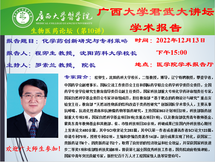 广西大学君武大讲坛之古天乐代言太阳集团网址生物医药论坛(第10讲)