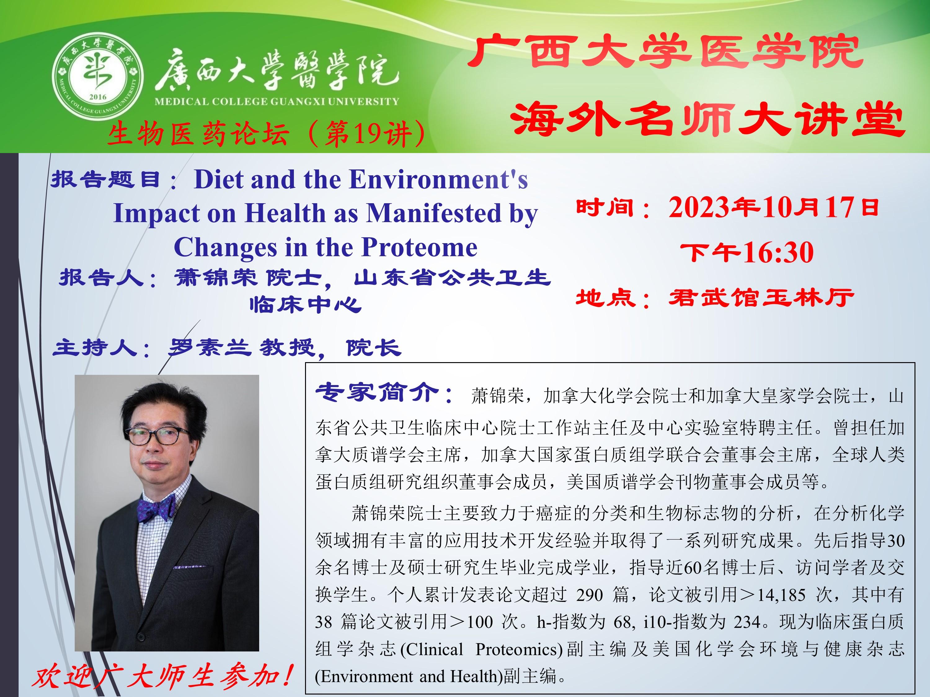 古天乐代言太阳集团网址(第19讲):Diet and the Environment's Impact on Health as Manifested by Changes in the Proteome