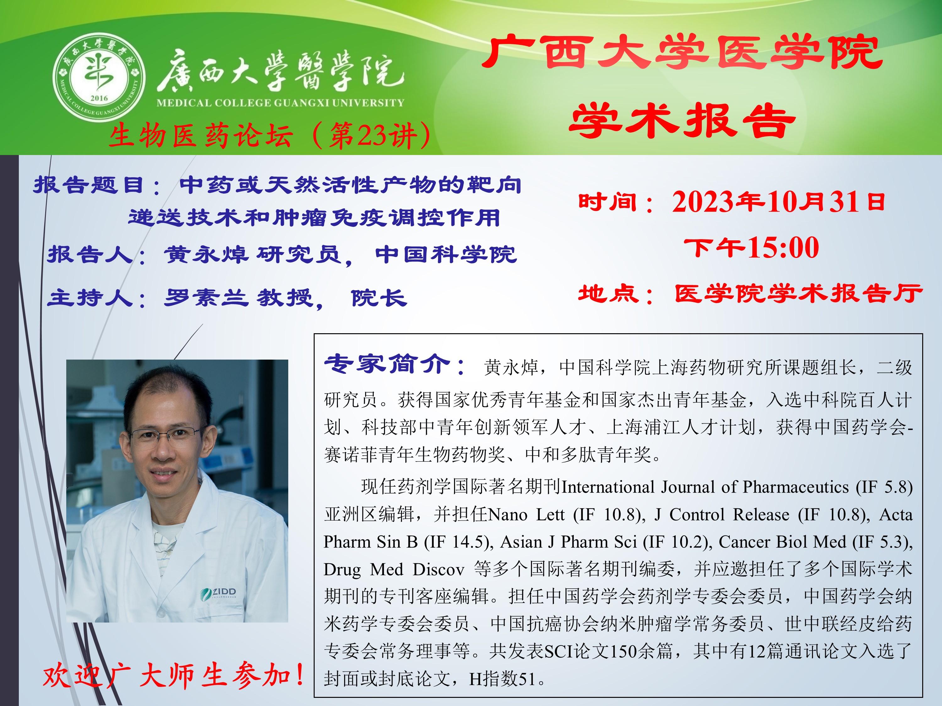 古天乐代言太阳集团网址(第23讲):中药或天然活性产物的靶向递送技术和肿瘤免疫调控作用