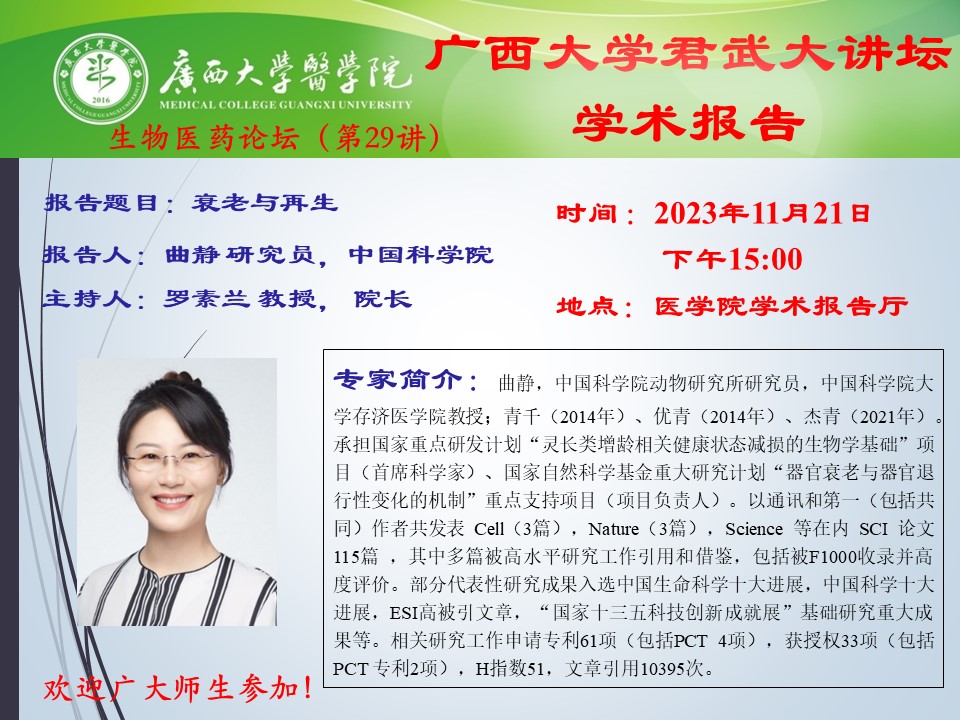 广西大学君武大讲坛之古天乐代言太阳集团网址生物医药论坛(第29讲)